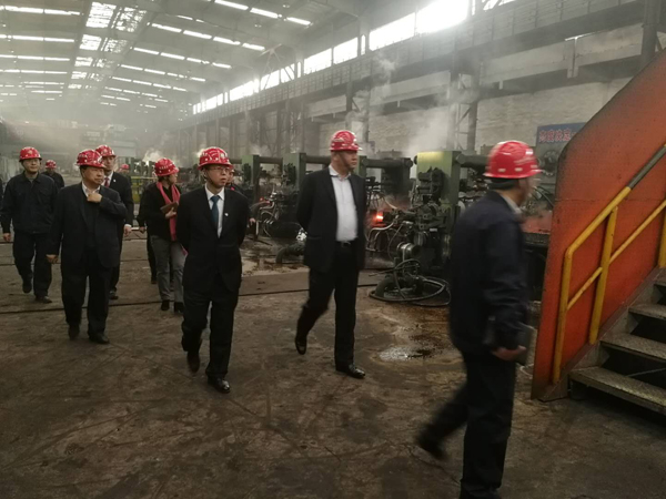 嘉晨集團董事長孫壽寬、總裁趙松一及公司各副總陪同王旭行長一行,參觀嘉晨營鋼軋鋼廠