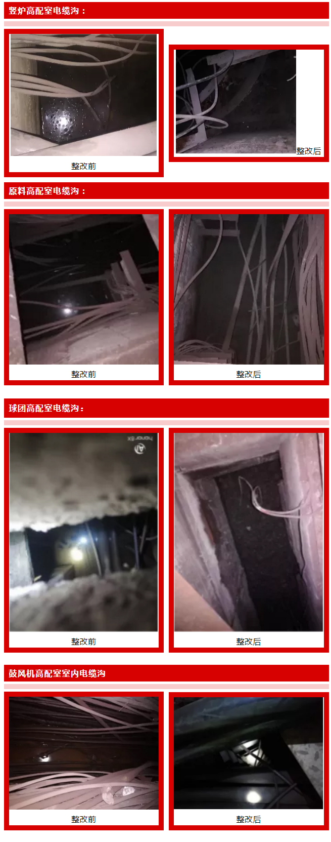 通過這次整改措施的落實,各廠高配室電纜溝積水問題已從根本上得到了有效治理,為供配電設(shè)備安全運行提供了有力保障。為持續(xù)鞏固治理成果,公司出臺了《營口鋼鐵配電室電纜溝積水管理制度》,進一步強化了崗位責任制,保證了全公司廠高配室安全管理步入穩(wěn)定運行軌道。