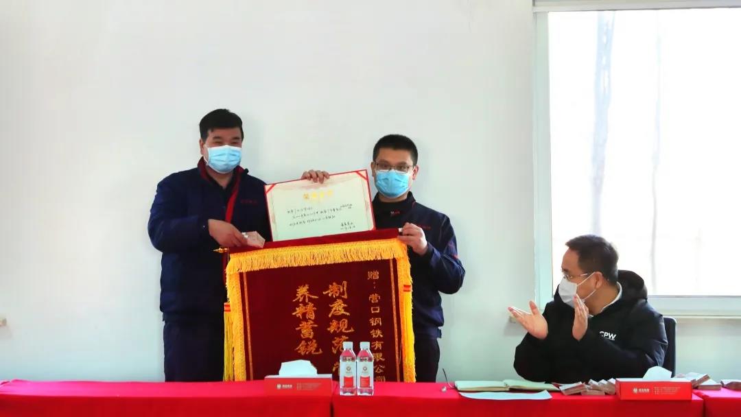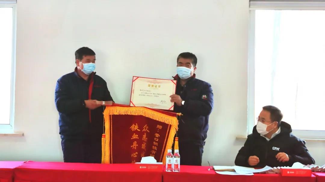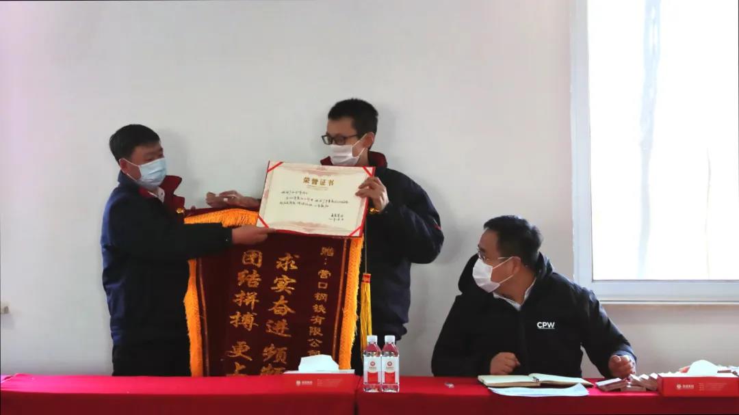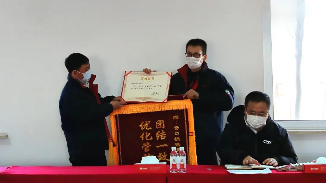 張總為煉鐵廠頒發(fā)錦旗和榮譽(yù)證書(shū)
